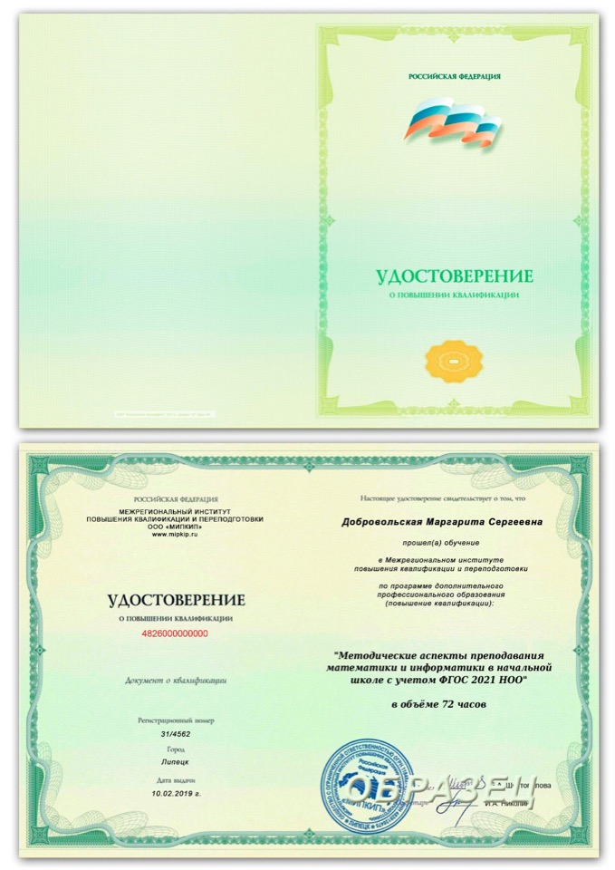 Межрегиональный институт повышения квалификации и переподготовки (МИПКИП) осуществляет обучение специалистов по программе "Методические аспекты преподавания математики и информатики в начальной школе с учетом ФГОС НОО" в заочной форме (не указывается в документе) с применением дистанционных технологий. Для обучения достаточно наличие компьютера с выходом в информационную сеть Интернет.